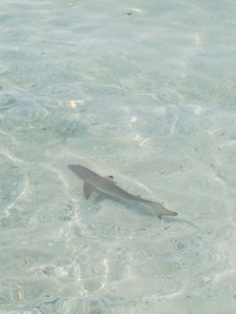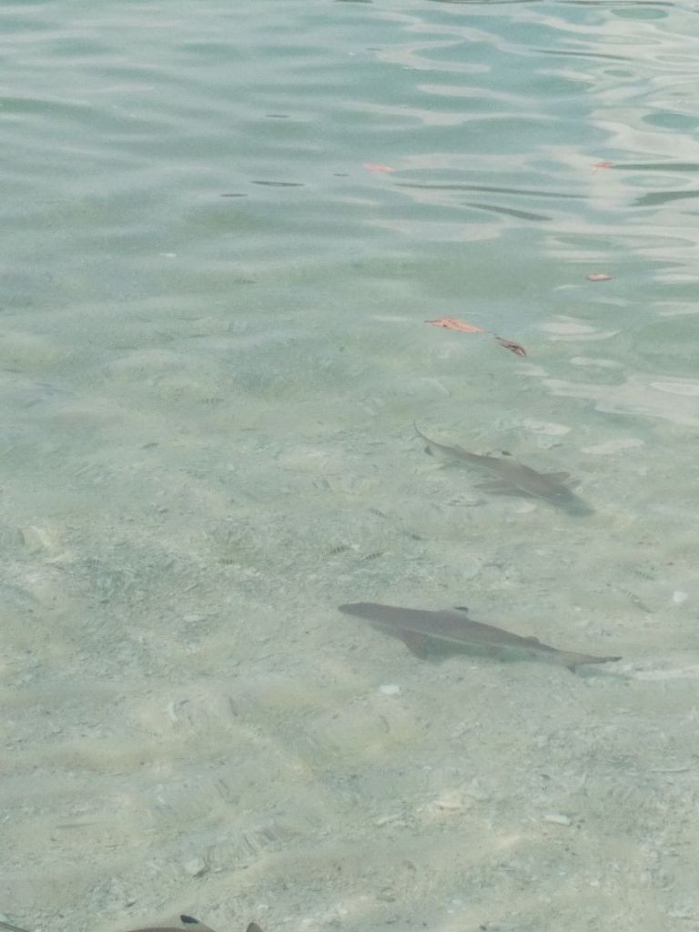 Schließlich war auch hier der Tag der Weiterreise angebrochen. Wir hatten bereits gefrühstückt und unsere Sachen gepackt, als uns der Seniorchef erneut aufforderte mit ihm zu kommen. Am Strand verfütterte er gemeinsam mit seinem Sohn Fischreste an vier Babyhaie und es war faszinierend, wie diese sofort in eine Art Jagdverhalten verfielen und die Fischreste umkreisten, bevor sie sie fraßen.