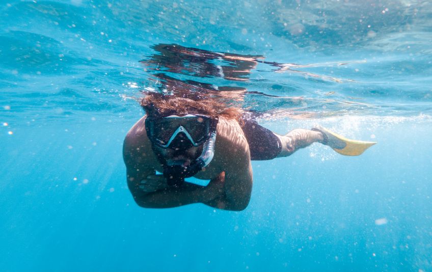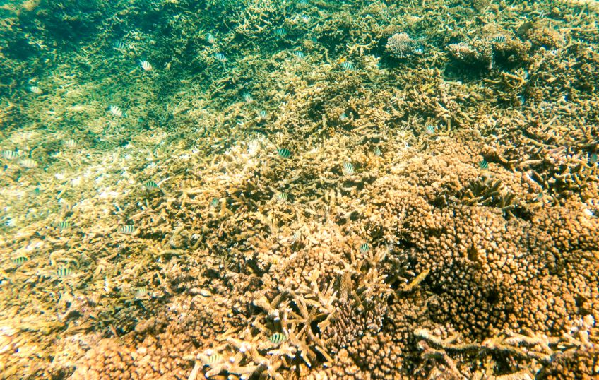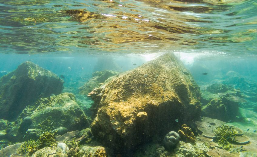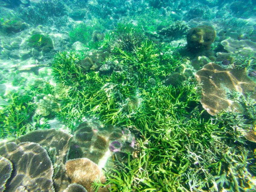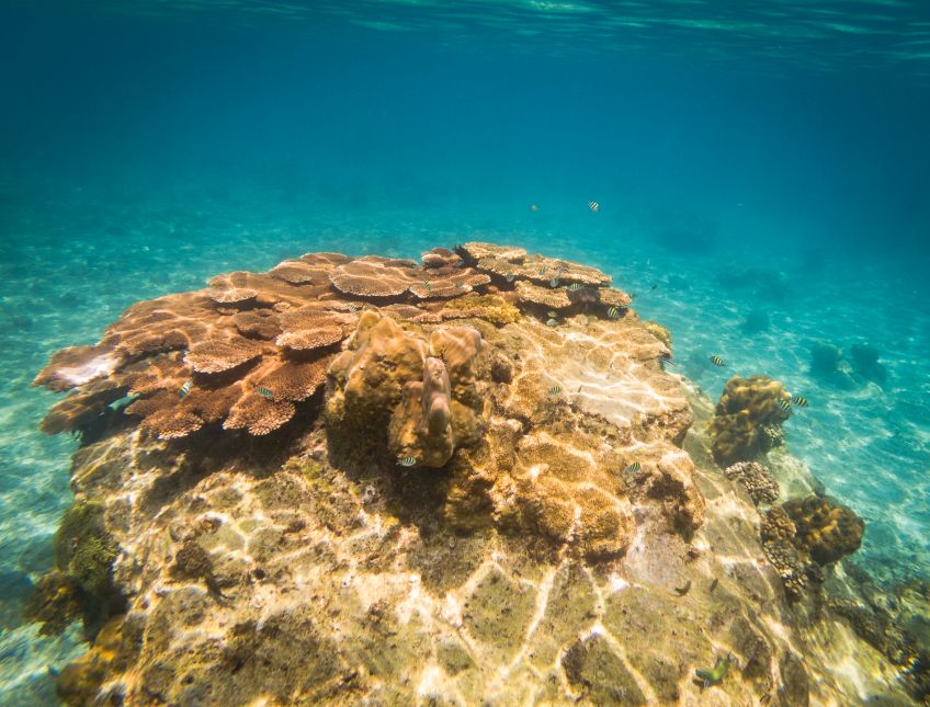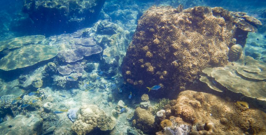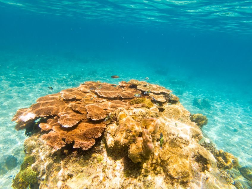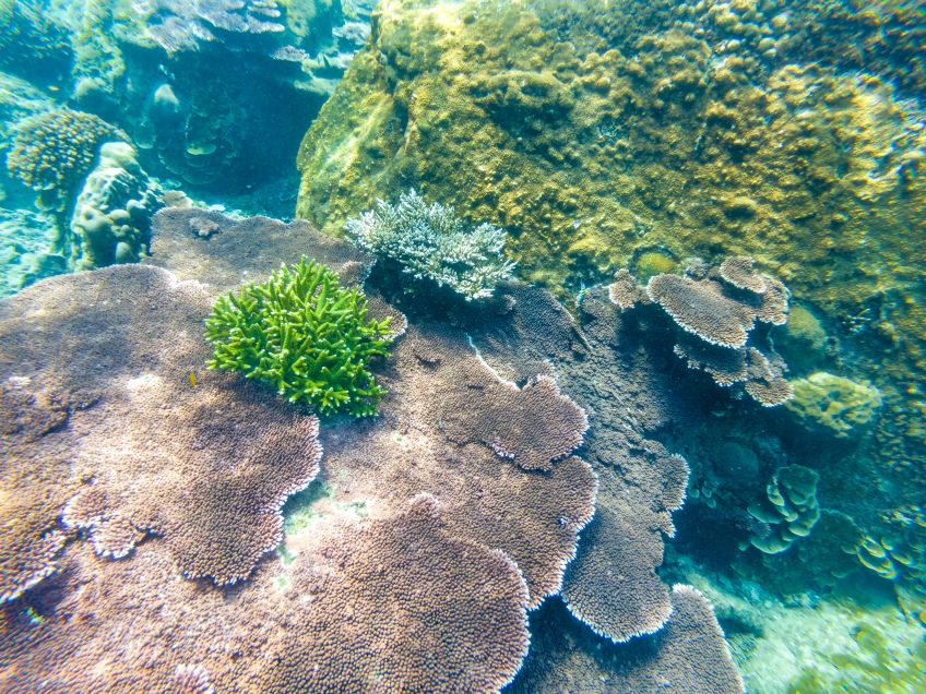 An unserem letzten Tag verabschiedete sich die Insel mit einem ganz besonderen Geschenk von uns: Wir hatten den Tag mit Sonne liegen, quatschen und Erlernen von neuen Kartenspielen verbracht. Also beschloss ich am Nachmittag noch eine Runde schnorcheln zu gehen, während Jakob ein Nickerchen in der Sonne hielt. Ich paddelte also gemütlich zu der Stelle an der ich ein paar Tage zuvor eine schwarz-weiß gestreifte Seeschlange gesehen hatte und sah plötzlich einen der Riesenbüffelkopf-Papageienfische, die ja mit ihren bis zu 1,5m ziemlich beeindruckend sind! Und dann wurden es immer mehr von ihnen – eine ganze Horde von insgesamt 17 gigantischen Fischen schwamm direkt unter mir im Wasser – es war gleichzeitig faszinierend und beängstigend alleine mit dieser grasenden Herde im Wasser zu sein!! Hin- und hergerissen drehte ich schließlich um und probierte von einem Floß aus die am Strand liegenden Alex, Ant und Jakob auf mich aufmerksam zu machen, damit sie sich dieses besondere Spektakel ansehen konnten – keine Reaktion… Ich schwamm zurück, holte Ant und Jakob mit ins Wasser und wir gingen die Herde suchen, die mittlerweile den Standort gewechselt hatte.