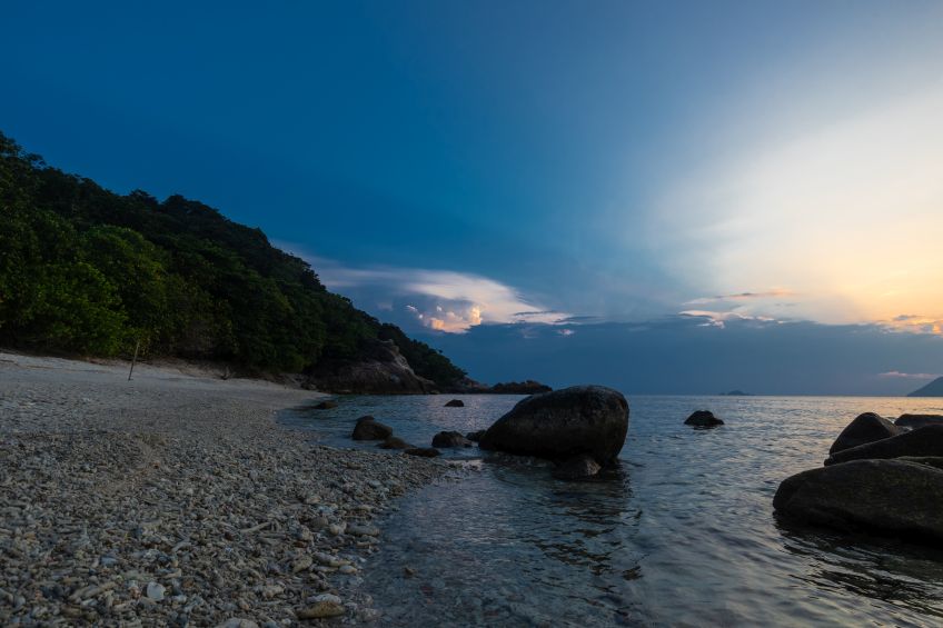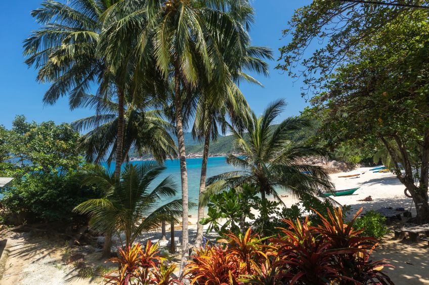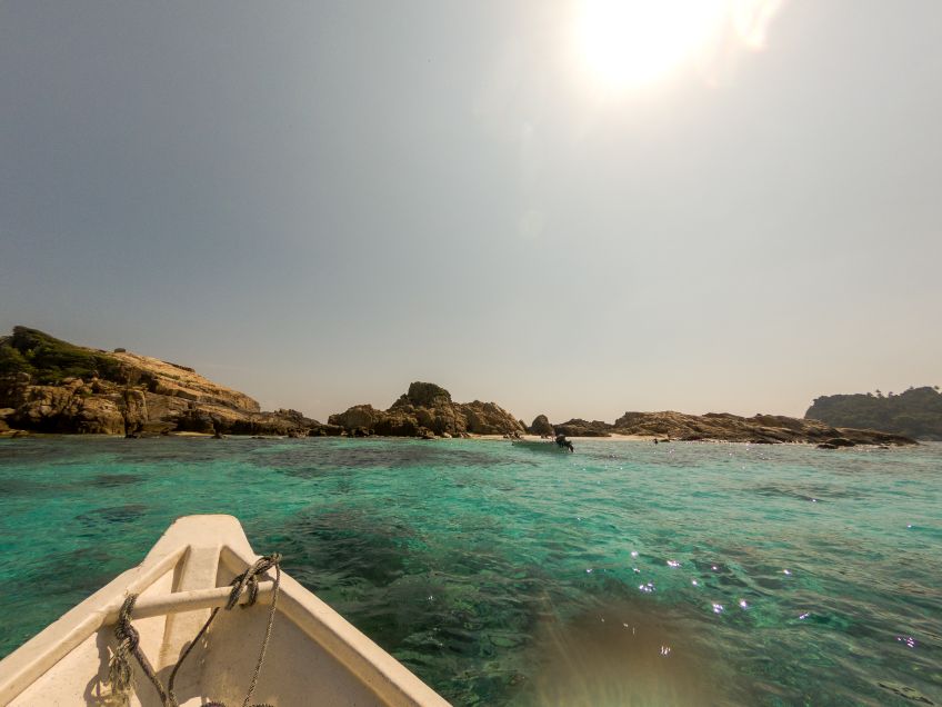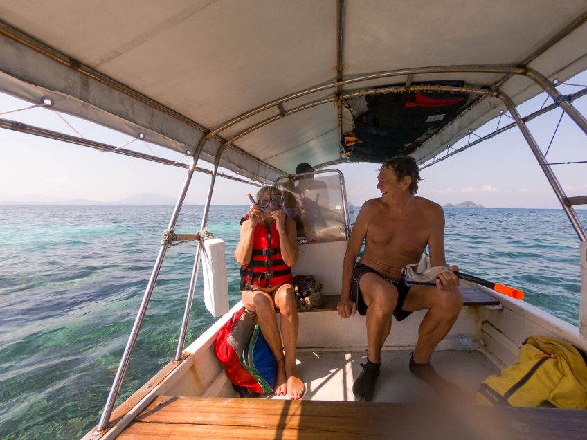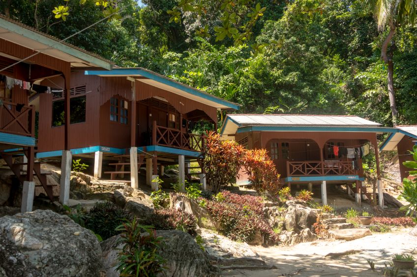 Zimmer waren noch nicht fertig, Frühstück war lecker und dann gings gleich mal schnorcheln – unglaublich viele Fische in allen Farben und Jakob sah gleich den ersten Hai in freier Wildbahn seines Lebens (es war zwar ein Baby-Schwarzflossenriffhai, aber immerhin)! Nun waren wir wieder wach und die Abenteuerlust hatte uns, wie immer an einem neuen Ort, gepackt. Wir packten unseren Rucksack und machten uns auf den Weg zum 10 Minuten entfernten Turtle Beach, kein Sand, alles Korallen und die Sicht unter Wasser war sogar noch besser (geschätzte 20+ Meter)! Beim zurückkommen waren unsere Zimmer fertig und wir brachten unsere Sachen rauf ins Zimmer mit Blick auf Meer und Strand – perfekter kann es kaum sein… Wobei, habe ich schon mal erwähnt, dass die Malayen eher Fans von Löchern im Boden statt normalen Toiletten sind? Deshalb auch die überall zu findenden Zeichen, dass auf den Toilettenschüsseln nicht gestanden werden darf 😀