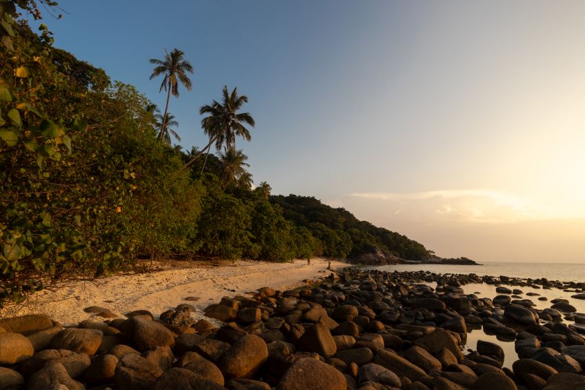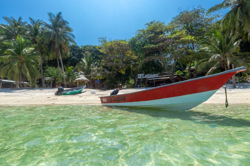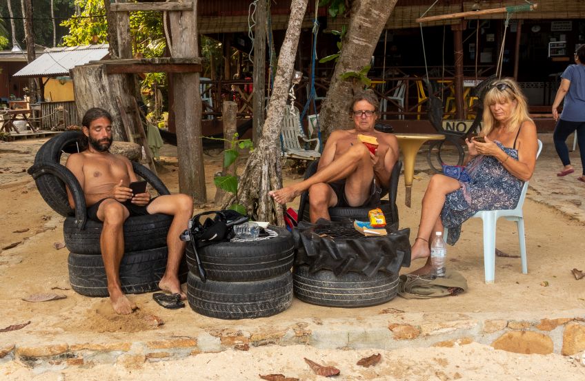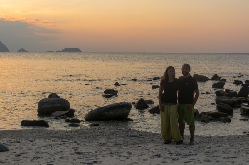 Ja, und nachdem wir keine Wäscherei gefunden hatten und uns die Kleidung aus zu gehen drohte, luden wir nun alles ab und gönnten uns ein Wäscheservice für glatte € 25 – nützt ja nichts. Anschließend ging es weiter ans Entdecken und wir marschierten über den Hügel rüber zum Longbeach, dem Hauptstrand der Insel, der uns nach so viel Ruhe und wahrscheinlich auch der Müdigkeit geschuldet, mit den ganzen Menschen, Restaurants und Tauchschulen dezent überforderte. Wir erkundigten uns bei den Tauchschulen und Unterkünften um, aber nichts war annähernd so gemütlich wie dort wo wir angekommen sind. Lediglich die Roti mit Curry waren eine Sünde wert! Abends ging es dann mit dem Taxiboot zurück zur Unterkunft und wir schliefen wie die Steine!!