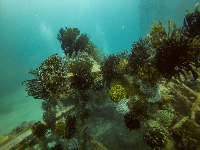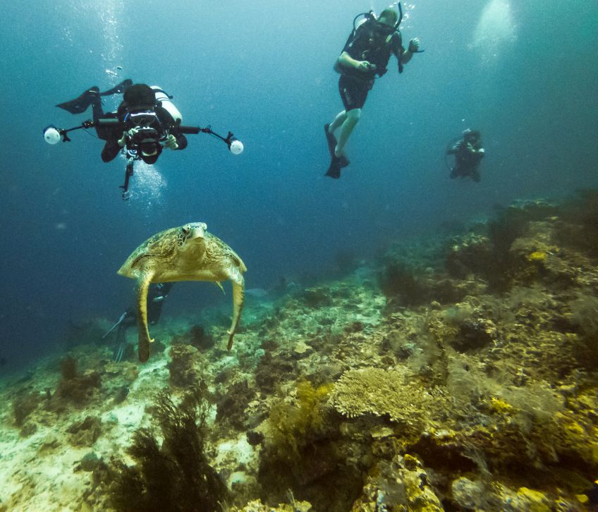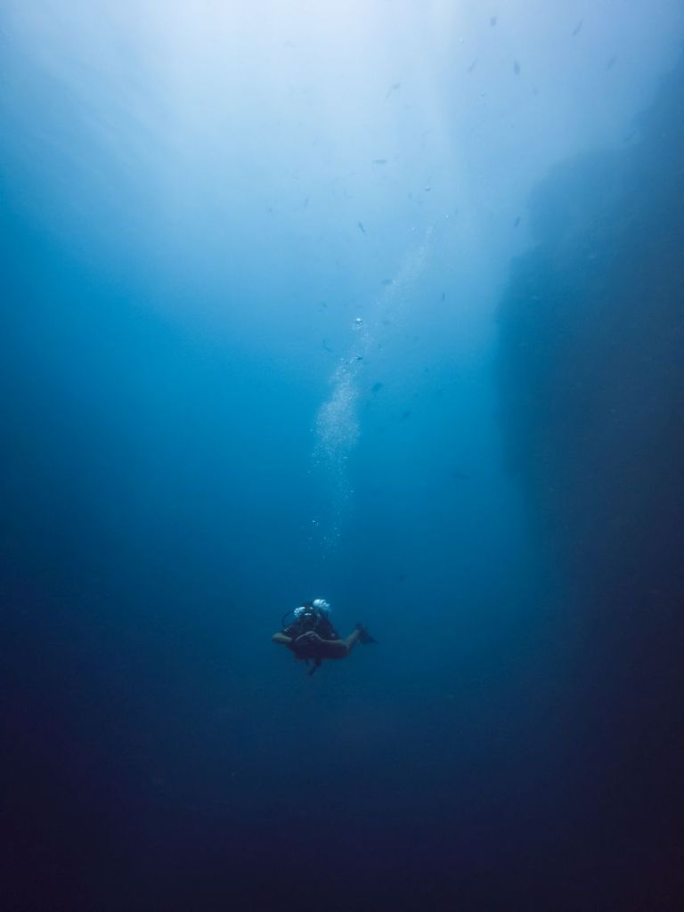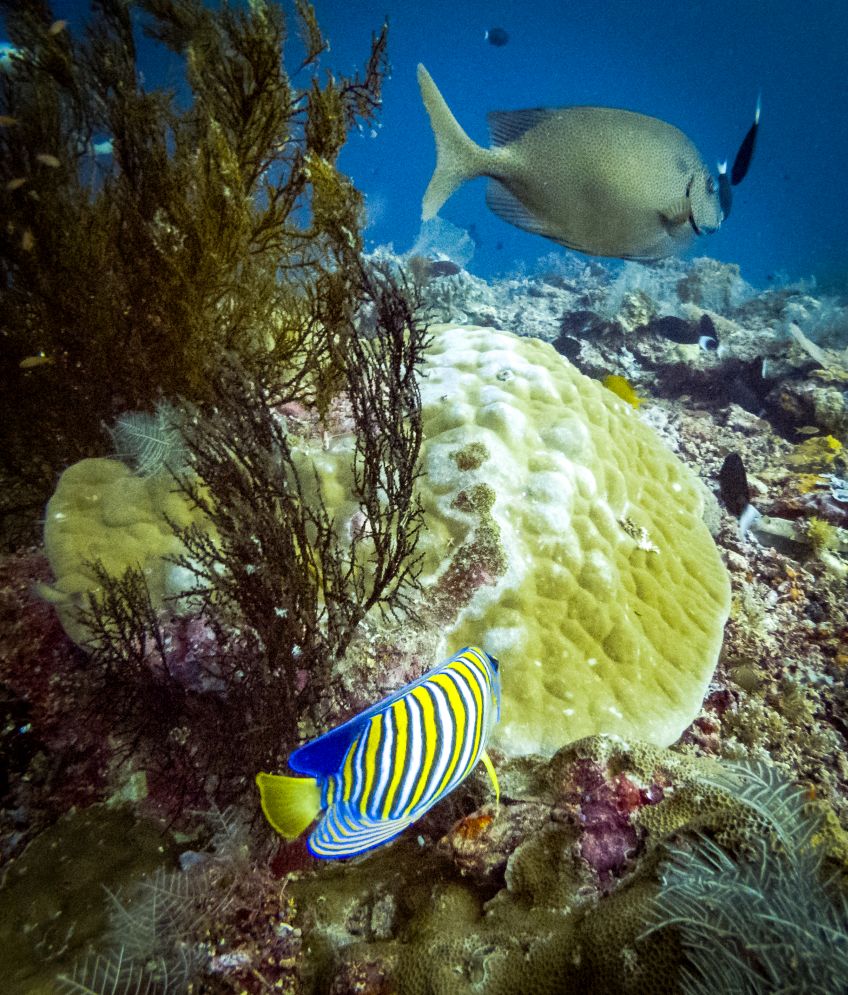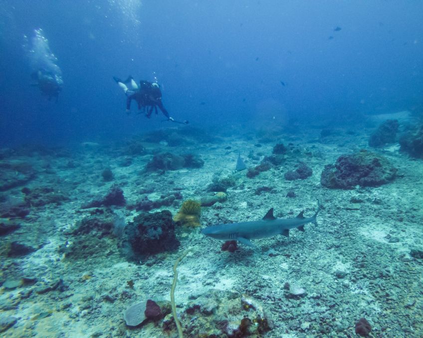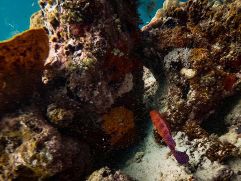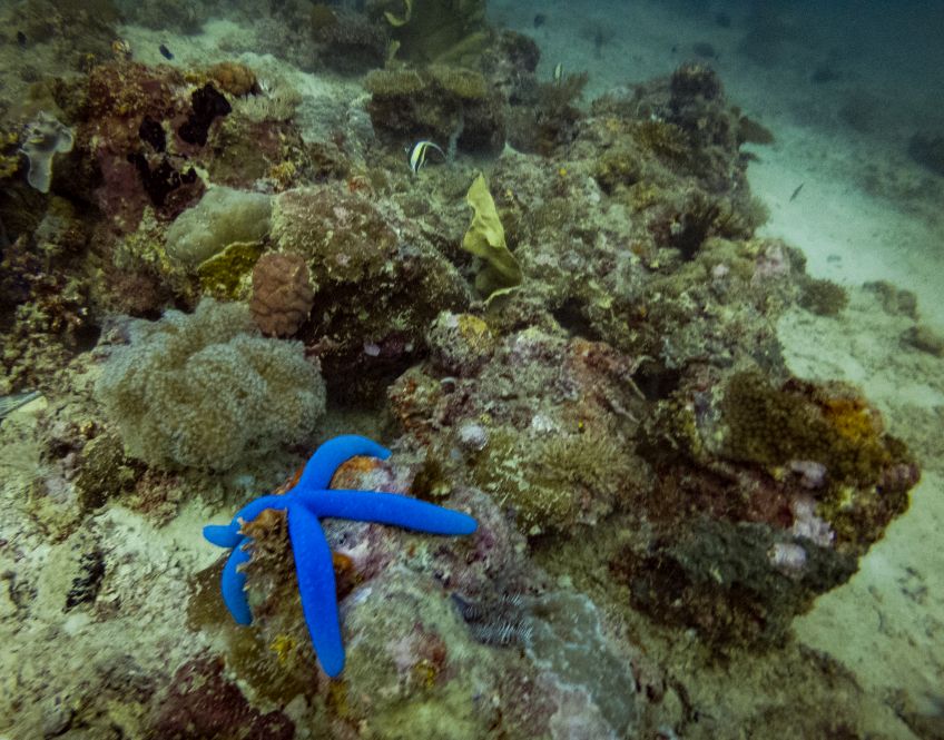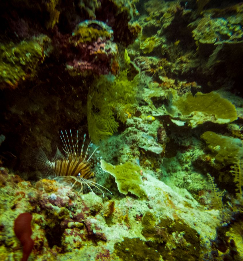 Am nächsten Tag ging es dann um 08:30 weiter mit den nächsten Tauchgängen, bei denen wir dann auch langsam anfingen unsere kleine GoPro – im Vergleich zu den riesigen Unterwasserkameras der meisten anderen Gäste – mitzunehmen, um diese zauberhafte Welt in Bildern festzuhalten. Unsere Tauchkünste verbesserten sich mit jedem Tauchgang, was viel Freude machte. Besonders ich war froh darum, dass der Druckausgleich kein Problem mehr für mich darstellte und sowohl Wall-Dives (bei denen an einer steil abfallenden Wand nach unten getaucht wir), als auch Drifttauchgänge (hier wird einfach mit teilweise sehr starker Strömung mitgeschwommen, was insbesondere das Ausweichen vor etwaigen Hindernissen (Steinformationen, Chinesische Mittaucher,…) notwendig macht, klappten ohne größere Probleme. Die beiden Chinesen verloren wir einmal, konnten sie allerdings kurz nach dem Auftauchen wieder ausfindig machen. An diesem, unseren zweiten Tag lernten wir Joost und Melanie aus Holland kennen und quatschten Abends noch ein wenig in gemütlicher Runde.