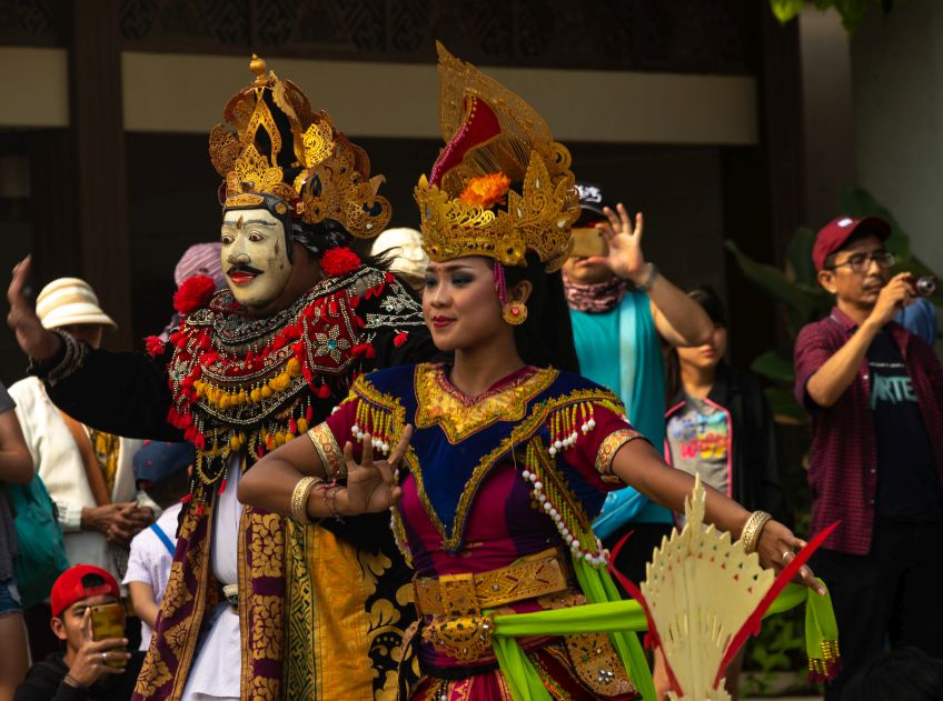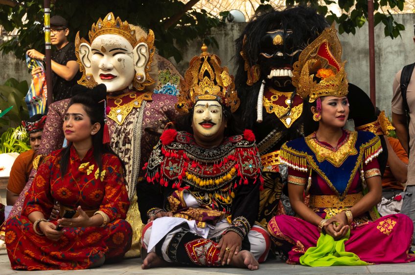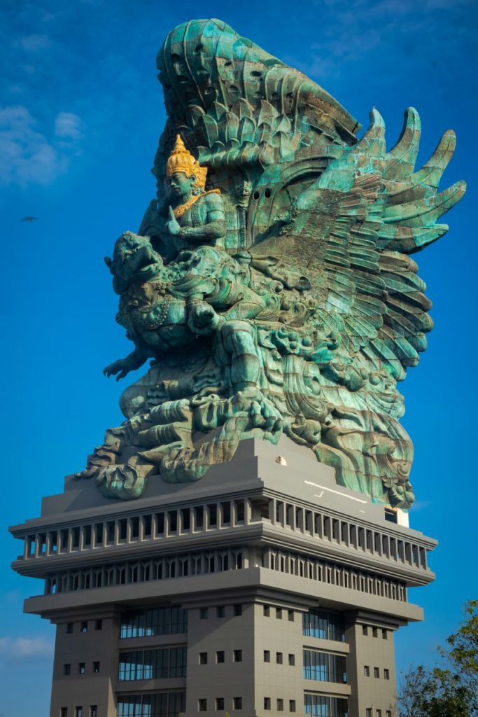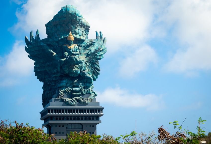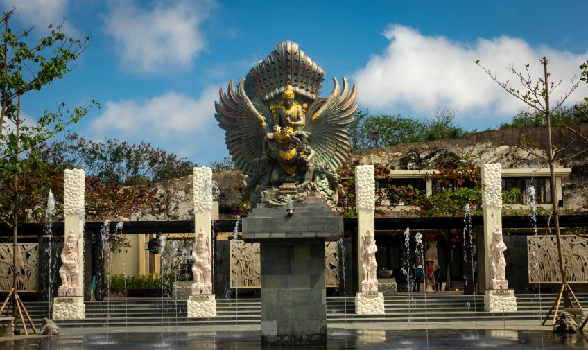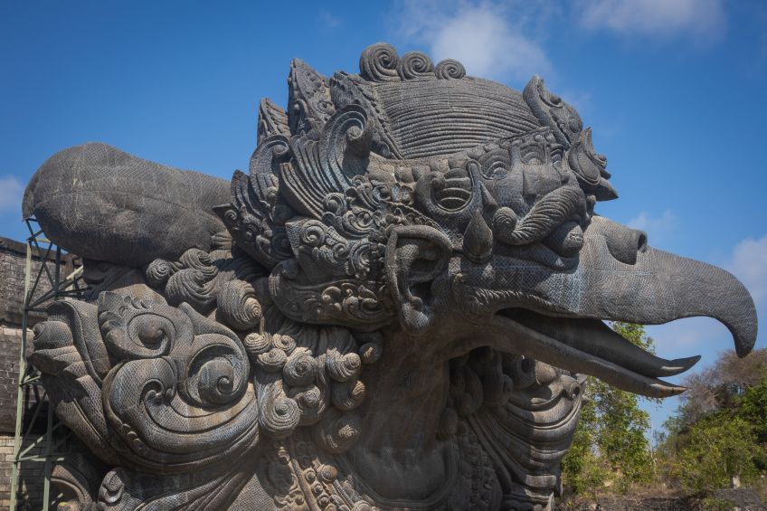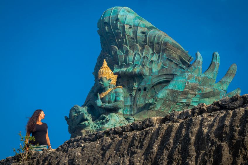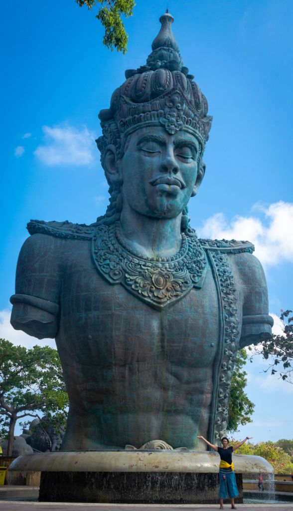 Auf Empfehlung von Gabor ging es am nächsten Tag in das Garuda Wishnu Kencana, kurz GWK. Wishnu ist die hinduistische Gottheit der Erhaltung und reitet auf Garuda durch die Lüfte. Im GWK waren die Beiden mit riesigen Statuen dargestellt – echt beeindruckend groß! Aber auch der GWK selbst ist schon deshalb sehenswert, weil er in einem alten, stillgelegten Steinbruch erbaut wurde und viele der Quadern noch erhalten sind und links und rechts der Durchgänge aufragen. Schon die Zufahrt zum GWK ist von zahlreichen überlegensgroßen Statuen von Tieren gesäumt und auf der Terrasse des Restaurants hat man einen Ausblick über die ganze Umgebung. Zum Ende haben wir uns noch den Umzug und den traditionellen Tanz angesehen – die Figuren und Bewegungen waren teils witzig, teils interessant – die erzählte Geschichte habe ich leider nicht ganz verstanden. Später ging es für uns an den Jimbaran Beach wo wir uns frisch gebratenen Mais mit Chilli und Butter (sehr lecker!!) holten und uns den Sonnenuntergang anschauten.