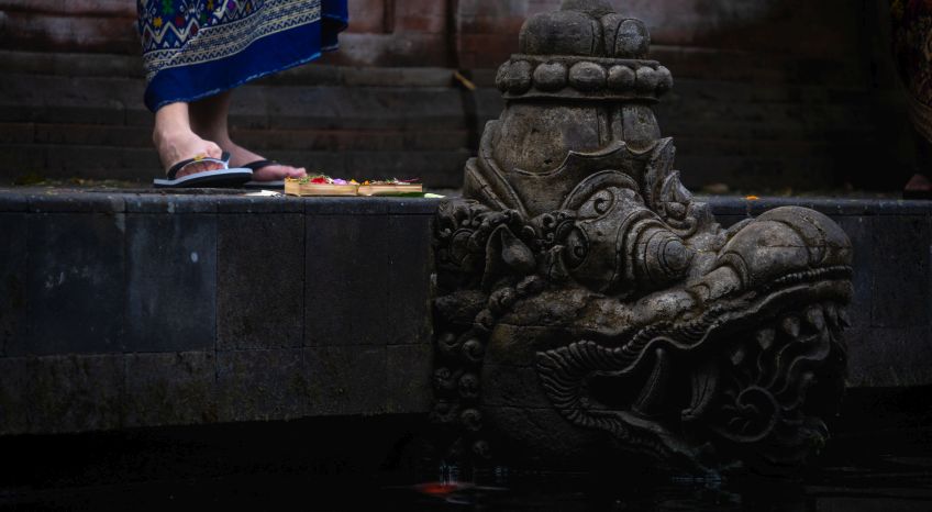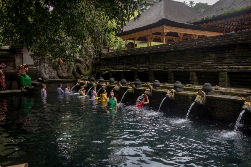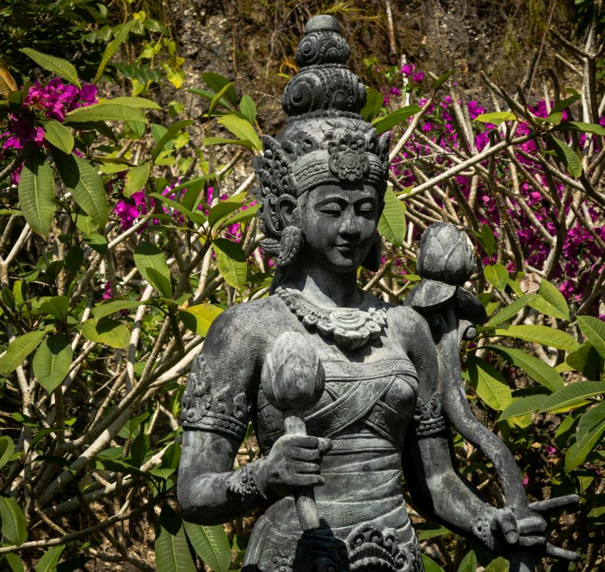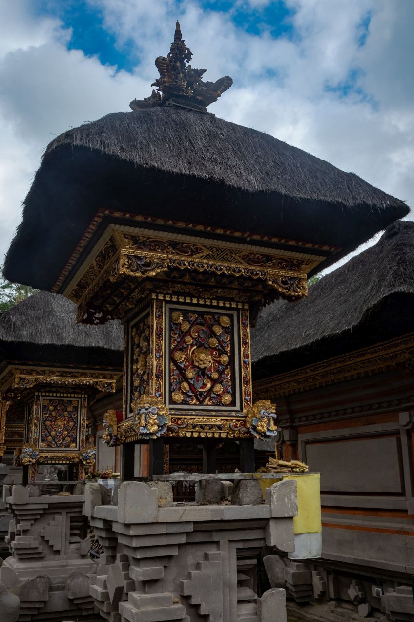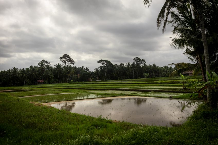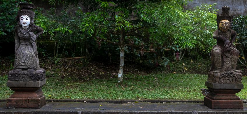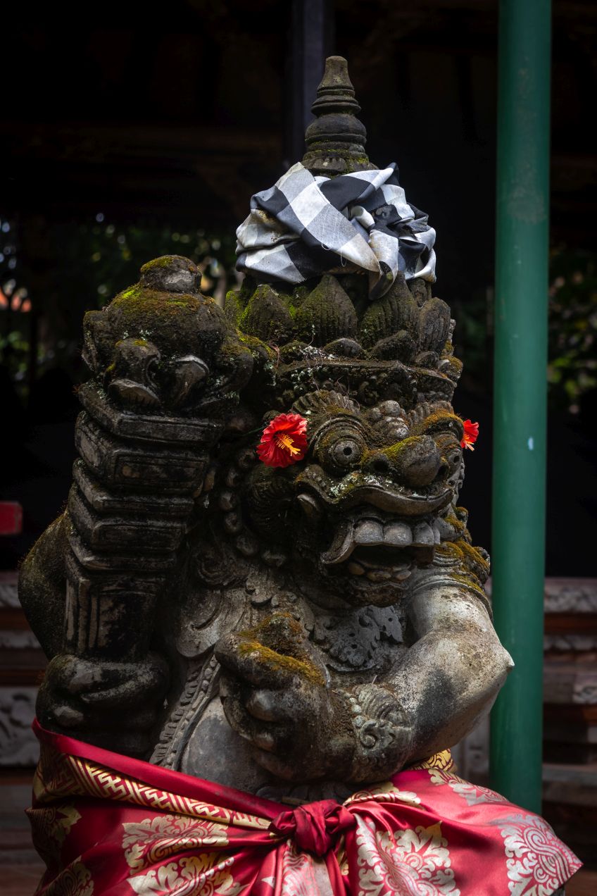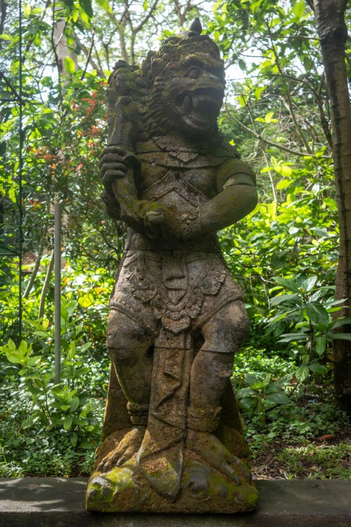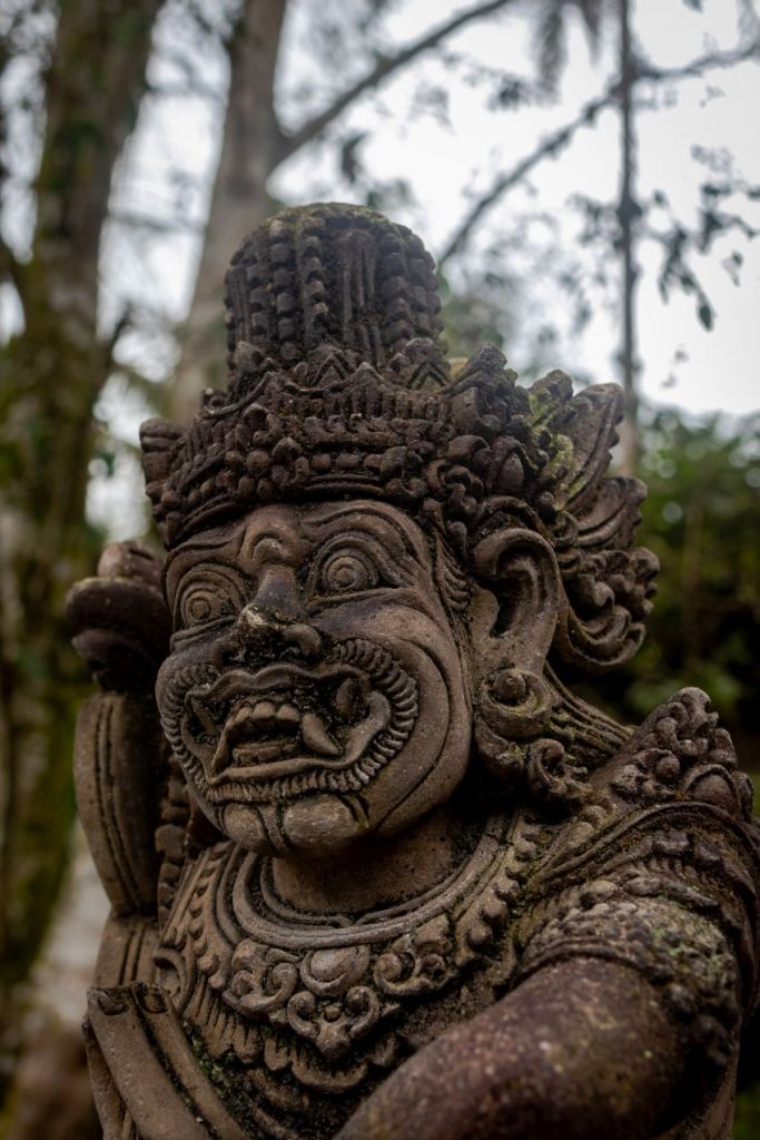 Danach erkundeten wir zu Fuß etwas abseits der Hauptstraße die Tempel in Ubud. Sowohl die größeren als auch die kleinen Haustempel sind reichlich verziert und verschnörkelt. Die unterschiedlichen Darstellungen der hinduistischen Götter sind sehr interessant, leider waren viele Tempel nur für betende Hinduisten zugänglich und wir konnten nur von außen einen Blick hineinwerfen. Dies hat mich etwas überrascht, da die Tempel (ich weiß Unterschied zwischen Buddisten und Hinduisten) in Thailand großteils zugänglich sind. Dennoch: jeder Tempel für sich war sehr beeindruckend und es war spannend sie zum Teil in ganz kleinen Seitenstraßen zu entdecken. Besonders schön war auch, als wir einfach einem Schild folgten, welches in eine winzige Gasse zeigte und zu einem „Magic Ricefield“ führen sollte – tat es auch! Wir fanden also die Reisfelder mitten in der Stadt und gleich war es unglaublich ruhig und nur ein paar Reiher stelzten im Wasser rum – es war eine schöne Pause zu der geschäftigen Stadt.