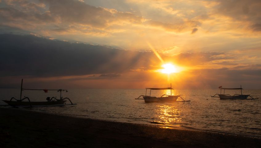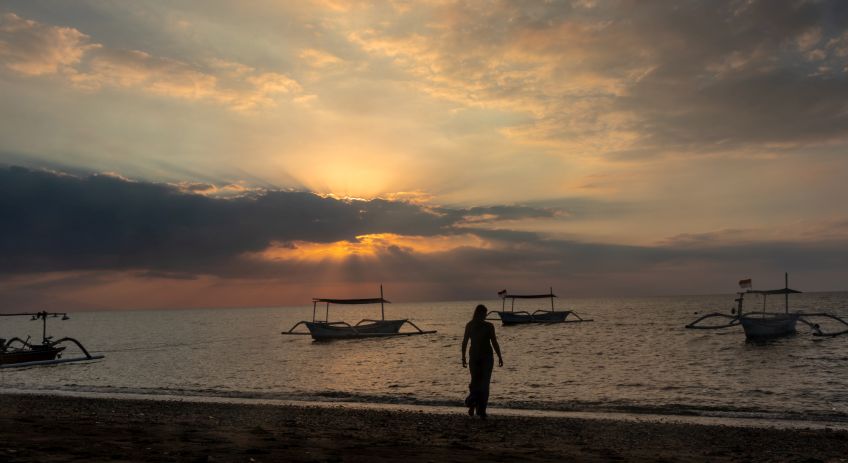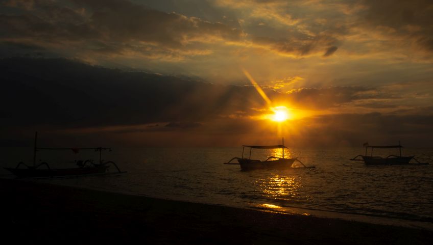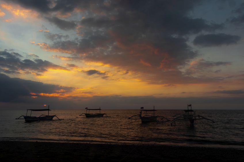 Gegen Mittag trafen wir uns mit Lana und Martin um gemeinsam weiter in den Norden zu fahren. Wir hatten richtig Glück mit unserem Grabfahrer, der extra für uns an den schönsten Aussichtspunkten Halt machte, uns jede Menge über seine Heimat erzählte und obendrein noch einen Minivan fuhr, sodass wir ausreichend Platz hatten. Schon die Fahrt selber, vorbei an Bergseen, rauf auf schroffe Felsen und dann wieder runter zur Nordküste mit einer wundervollen Aussicht über die ganze Region, war ein echtes Erlebnis. Als wir dann in der bezaubernden Unterkunft Gede Homestay auch noch sehr lieb begrüßt wurden (direkt hinter der Rezeption befand sich der schwarze Sandstrand und das Meer) und schließlich der Sonnenuntergang von den jammenden Nachbarn begleitet wurde, war der Tag perfekt!! Den nächsten Tag verbrachten wir lesend und Sonne tankend (Ubud war eher regnerisch) am Strand und genossen das Leben.