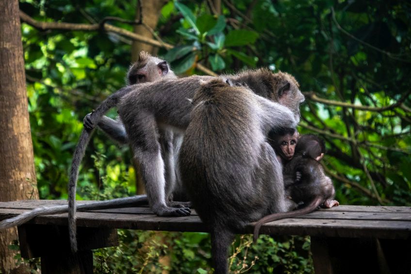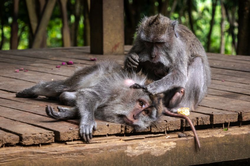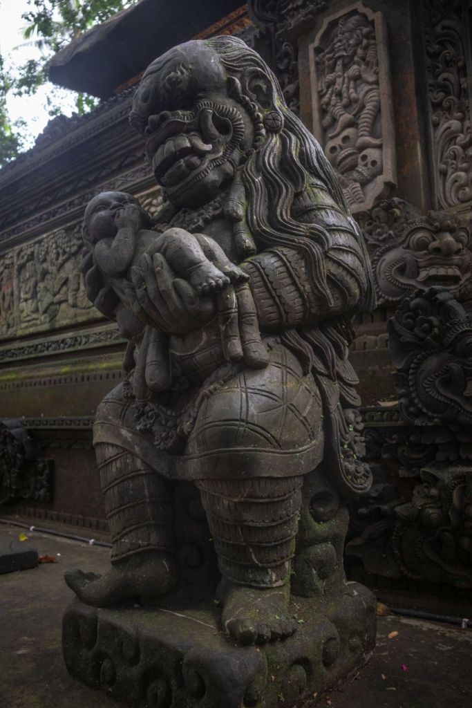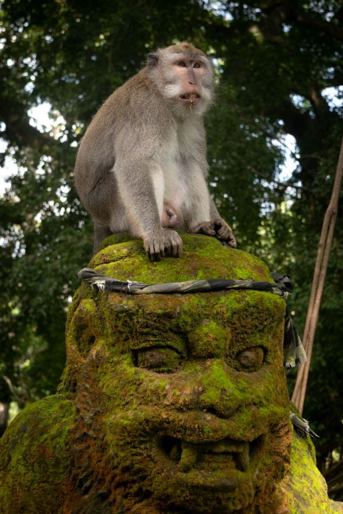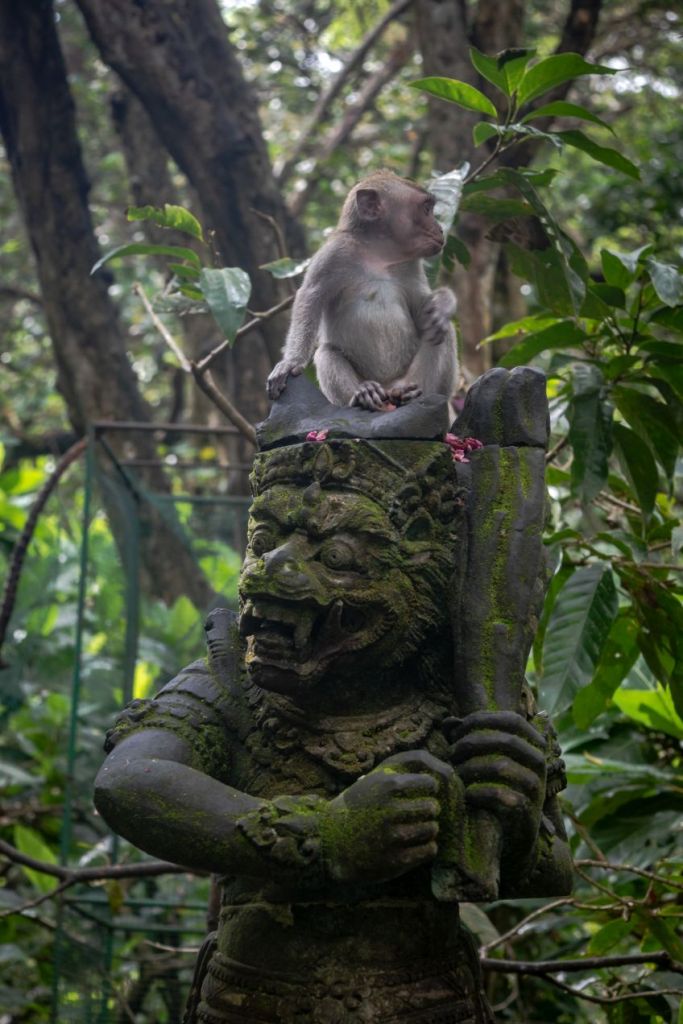 Am folgenden Tag ging es für uns gleich morgens los zum Monkey Forest, einem Dschungel mitten in der Stadt mit gefühlt hunderten Affen – ziemlich freche noch dazu: Einer kletterte so schnell auf meine Schultern, dass ich gar nichts tun konnte und probierte dann immer wieder den Rucksack aufzumachen. Was ihm nur nicht gelang, weil Jakob ihn immer wieder zumachte, was dem Äffchen nicht gefiel, weshalb er ihn mehrfach dezent anfauchte. Nach mehreren erfolglosen Versuchen den Störenfried los zu werden – wir hatten nicht einmal etwas zum Essen dabei – vollführte ich einen äußerst eleganten und gefinkelten Schulterwurf (zumindest ist es das in meiner Erinnerung so gewesen…) und Äffchen suchte sich ein neues Opfer.