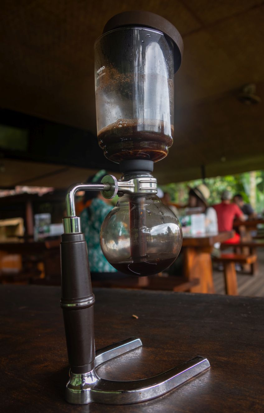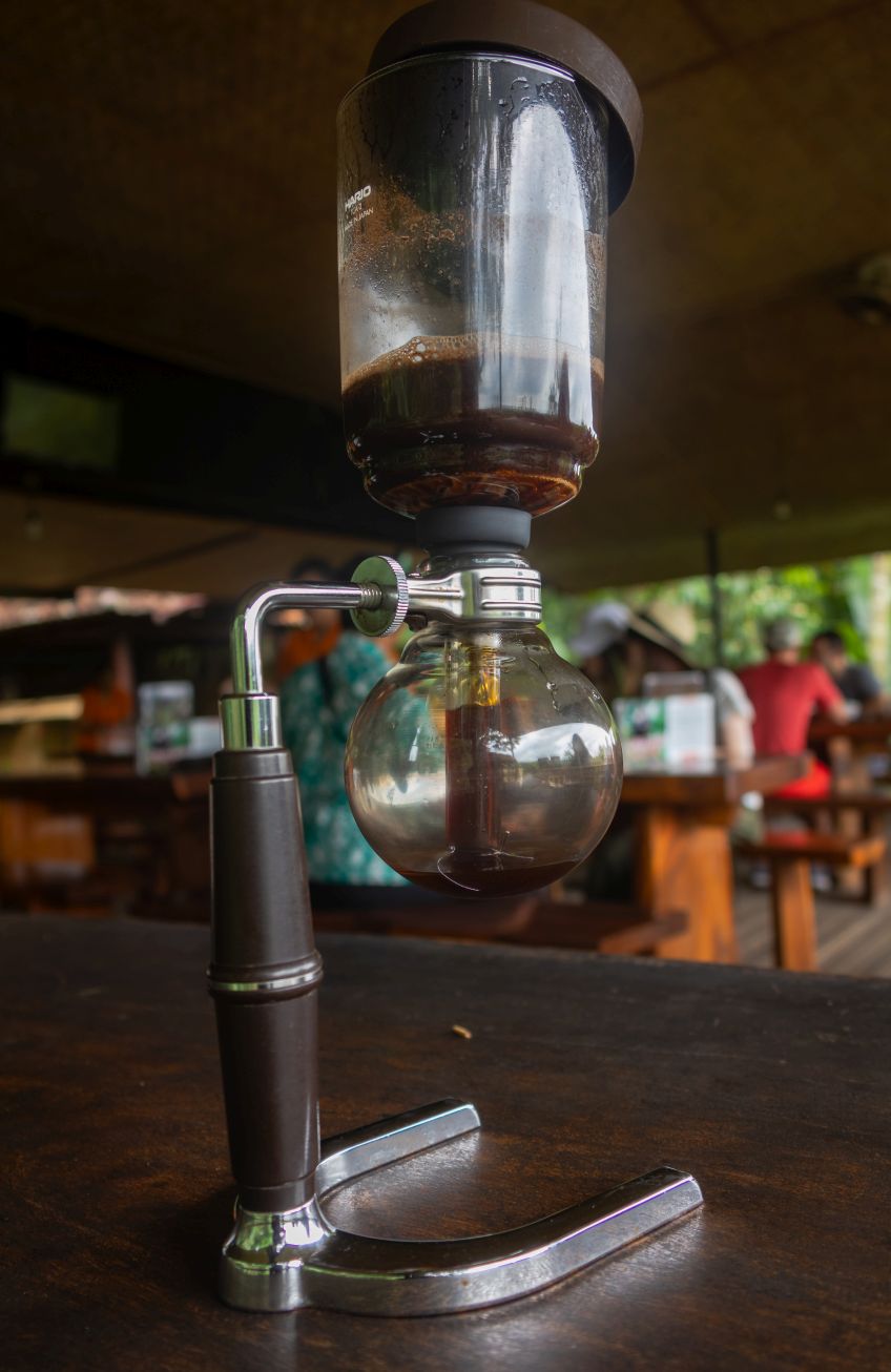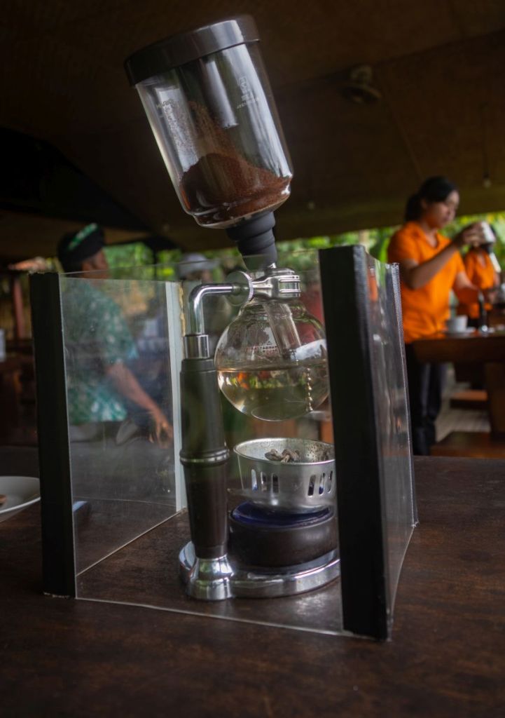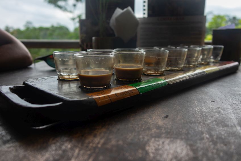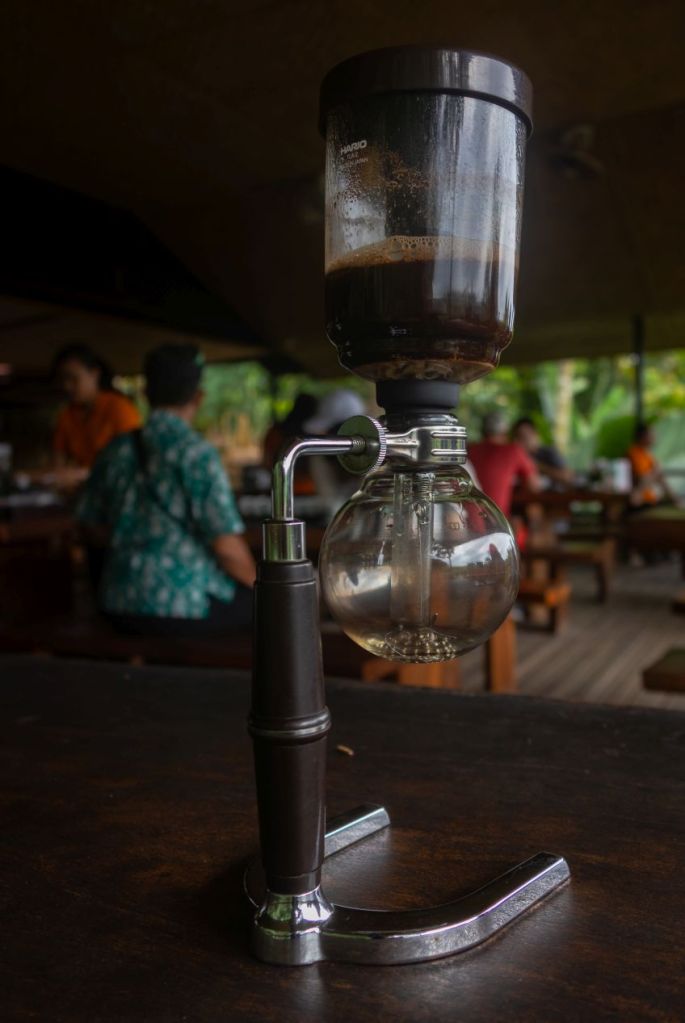 Am nächsten Tag ging es auf dem Moped raus aus der Stadt und zuerst zum einem weiteren Temple, wo wir beschlossen von einem reinigenden Bad aufgrund der Wassertemperatur und des Auflaufs Abstand zu nehmen. Anschließend brauchte Jakob seine Kaffeepause – also ging es weiter zu einer Kaffeeplantage mit Meerkatzenkaffee, wo wir gleichmal einen ganzes Tablett mit unterschiedlichen Kaffeesorten zum Kosten bekamen. Jakob hatte seine Koffeindosis intus und wir probierten (ja, ich habe auch genippt!) Meerkatzenkaffee – man schmeckte auch bei jedem Schluck die Art seiner Fermentierung… Auch lernten wir Lana (ursprünglich aus Kroatien) und Martin aus Deutschland kennen und verabredeten uns zum Abendessen, um ein paar Infos auszutauschen. Danach ging es für uns noch zur Elephant Cave, die mir sehr gut gefallen hat und wieder zurück zur Unterkunft.