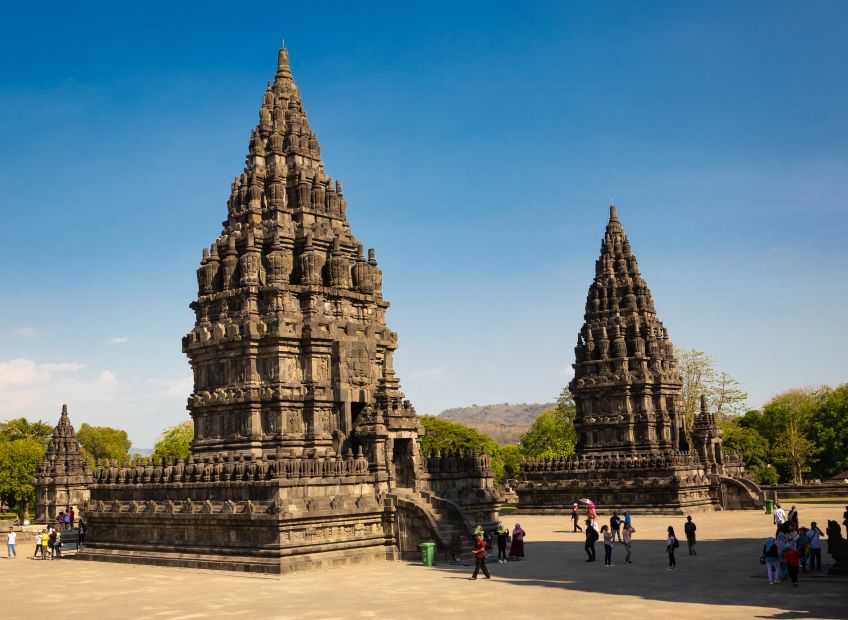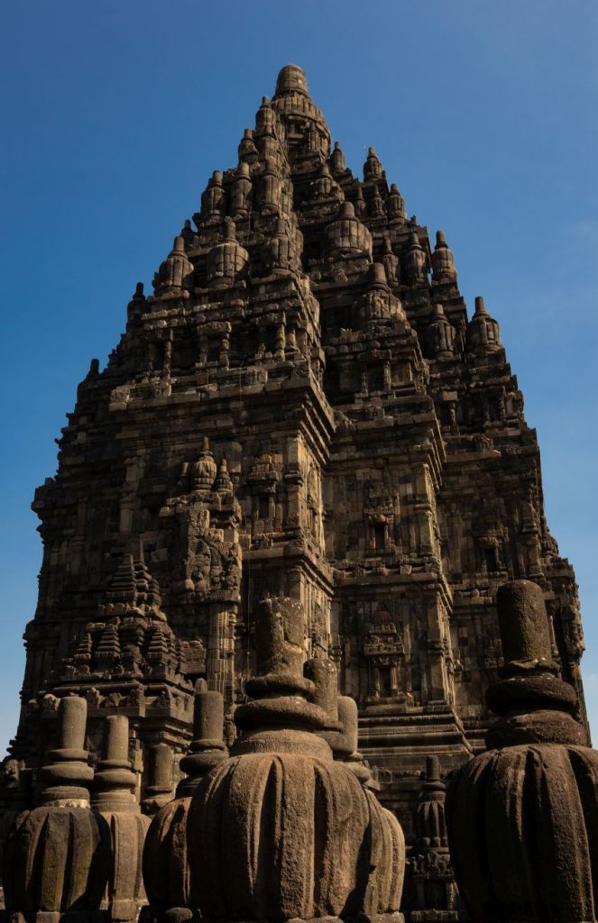 Vom Jetlag geplagt fiel besonders mir das Aufstehen am nächsten Tag schwer, während die Männer schon munter Frühstück mampften und Davids zahlreiche Moskitostiche bewunderten. Gegen Mittag waren wir dann doch alle abfahrbereit und mit dem Moped ging es quer durch die Stadt – immer wieder ein Abenteuer – zum Prambanan Tempel, einer der größten hinduistischen Tempel in Java. Und es ist nicht gelogen – groß ist er wirklich, vor allem die Fläche der einzelnen Tempelbauten!! Bevor wir allerdings dazu kamen uns die Gebäude genauer anzusehen, mussten wir noch einigen Einheimischen als Fotomodelle dienen… Manche scheinen sich einen Sport daraus zu machen möglichst viele Europäer auf ihren Bildern zu haben – warum, konnte uns noch niemand erklären. Beim Haupttempel angelangt sammelten uns gleich zwei Archeologiestudenten im Praktikum ein, um uns durch die Tempel zu führen. Sie erzählten uns viele interessante Geschichten zu den Göttern und auch das Amüsement kam nicht zu kurz J Nach einer kurzen Stärkung am Parkausgang ging es im Abendrot zurück in die Unterkunft und gleich anschließend zum leckeren Abendessen in ein Backpackerviertel, wo sogar Alkohol ausgeschenkt wird, was in Yogyakarta eher zu den Raritäten gehört.