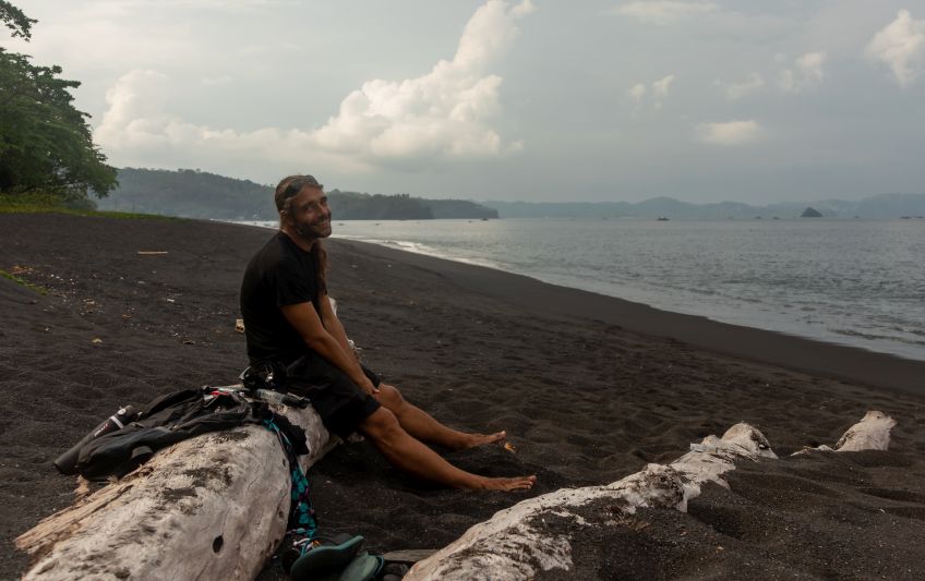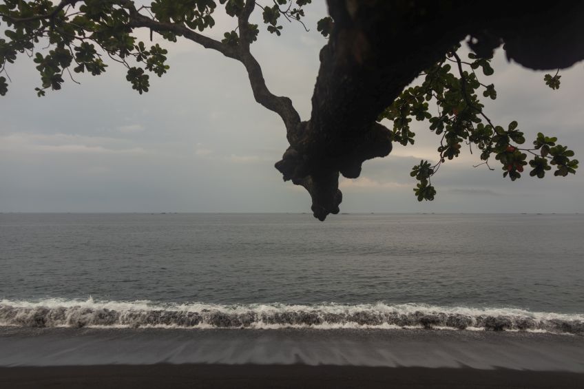 Die Arbeiten erfolgreich bewältigt ging es dann nach einem mittlerweile nur allzu bekannten Toastfrühstück weiter zu einem kurzen Ausflug in den Tangkoko Nationalpark. Wir übernachteten in der Ranger Station gleich gegenüber vom Parkeingang. Da die erste Parktour jedoch erst am späten Nachmittag erfolgen sollte, erkundeten wir vorher noch den nahe gelegenen schwarzen Strand – mich faszinieren schwarze Strände einfach!! Über Wasser war ein endloser und bis auf ein kleines Fischerdorf unbewohnter Strand zu finden, unter Wasser eine farbenfrohe Pracht an Fischen vor schwarz-blauem Hintergrund.