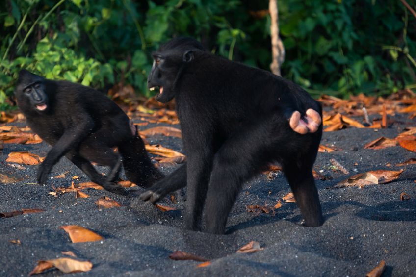 Wir machten uns wiederum auf die Suche nach den Tieren des Nationalparks und wurden für das frühe Aufstehen auch kräftig belohnt – eine ganze Affenbande erfüllte den Strand mit Leben und bot uns reichlich Motive zum Fotografieren und genießen. Nicht ganz so aggressiv wie die grauen Makkaken in Indonesien und Malaysien, konnte ich meine Trinkflasche dem Zugriff der schwarzen Makkaken erfolgreich entziehen.