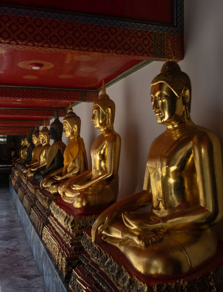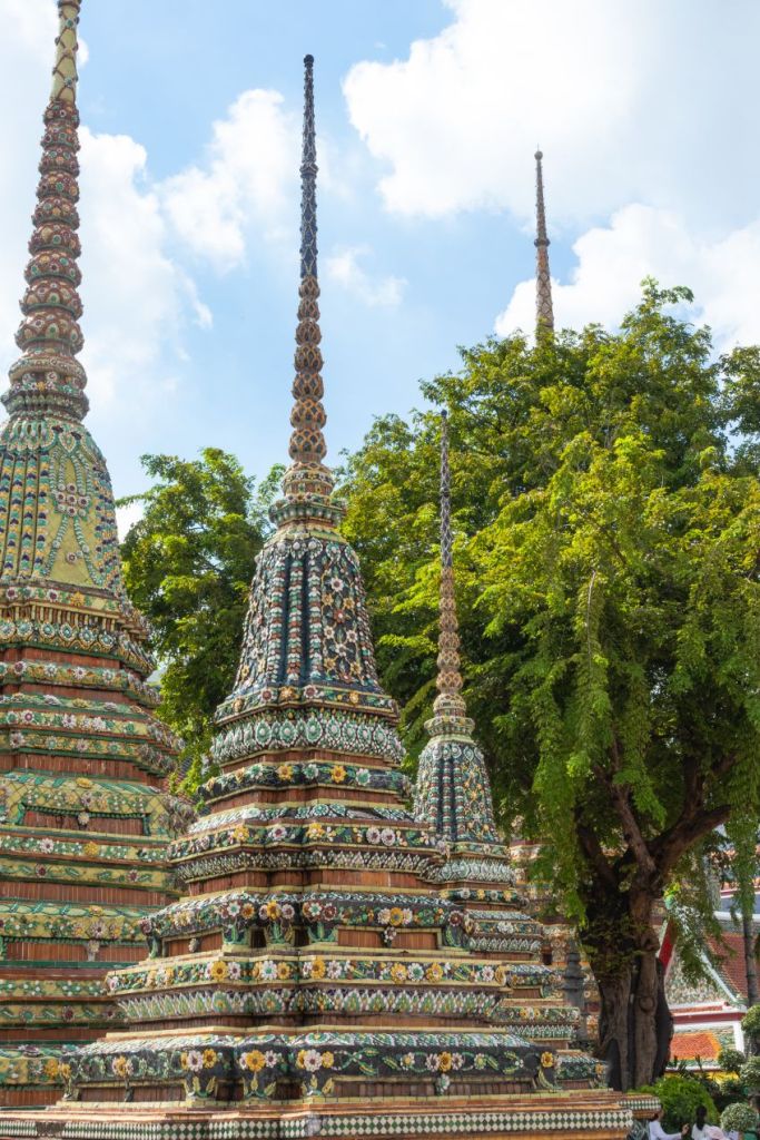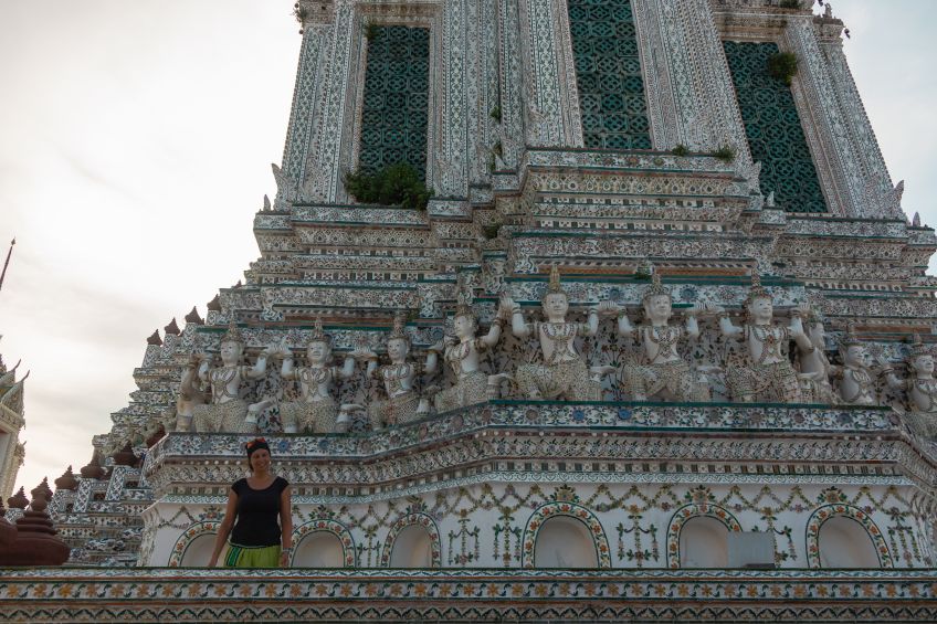 Nach nur allzu verdienter Nachtruhe ging es am nächsten Tag ausgeschlafen los zum Sightseeing: Als erstes stand nach einem ausgedehnten Fußmarsch in tropischer Hitze der Wat Pho mit dem Reclining Buddah auf dem Programm – immer wieder sehr faszinierend anzusehen! Von Jakob und Nadja war längere Zeit nichts anderes zu hören als das Klicken der Kameras. Somit wurden Didi und ich erfolgreiche Opfer von Schülern die Touristen als Interviewpartner suchten J Nachdem wir noch einer Tanzprobe für den bevorstehenden Buddah-Day beiwohnten ging es nach kurzem Smalltalk mit dem Wachbeamten inklusive Fotos mit der Fähre weiter zum Wat Arun auf der anderen Flußseite – meinem persönlichen Lieblingstempel in Bangkok! Doch schon ziemlich geschlaucht machten wir uns schließlich auf den Rückweg Richtung Unterkunft und gönnten uns eine kleine Vorspeise bevor wir uns wiederum im Getümmel des Backpackerviertels an den Köstlichkeiten der Straßenstände gütlich taten. Bevor wir uns einfach mal auf dem Gehsteig niederließen, um die Eindrücke auf uns wirken zu lassen, gönnten sich Nadja und Didi noch ihre erste Massage von vielen, die noch folgten…