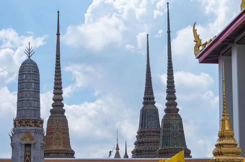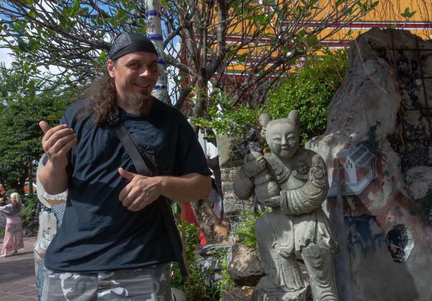 Im Hinblick auf die Weiterreise wurde der folgende Vormittag damit verbracht Flüge zu buchen und Unterkunft zu organisieren, denn am übernächsten Tag sollte es schon weiter nach Kambodscha gehen. Als dies erfolgreich erledigt war, teilten wir uns mit dem Plan, dass Nadja und Didi sich den Königspalast anschauen und wir derweil Wäsche und Blog machen auf… Tja, der Plan wurde leider einseitig dadurch abgeändert, dass der Palast aufgrund der bevorstehenden Feierlichkeiten geschlossen war. Nadja und Didi kämpfen sich jedoch trotzdem durch den strömenden Regen und durften in die angeschlossene Tempelanlage (die meiner Meinung nach schöner ist, als der Palast selbst), wie wir bei unserer Reunion am Nachmittag erfuhren. Wir machten uns auf nach Chinatown, welches Nadja gerne sehen wollte, kamen allerdings zu spät – die Läden machten gerade alle zu. Also Planänderung und es ging gemeinsam zum Rieseneinkaufszentrum MBK, um unter anderem „meine“ Hosen zu kaufen, die Didi liebenswürdigerweise mit nach Hause nahm – er wusste noch nicht, wie viele es werden würden… Danach gingen wir zu Fuß weiter zur Silom – man muss es einfach mal gesehen haben, wenn man in Bangkok ist – und warteten den Regen gemeinsam mit so manchen Ladyboys in einer Bar ab – die vielen Angebote eine Show zu besuchen, lehnten wir dankend ab…