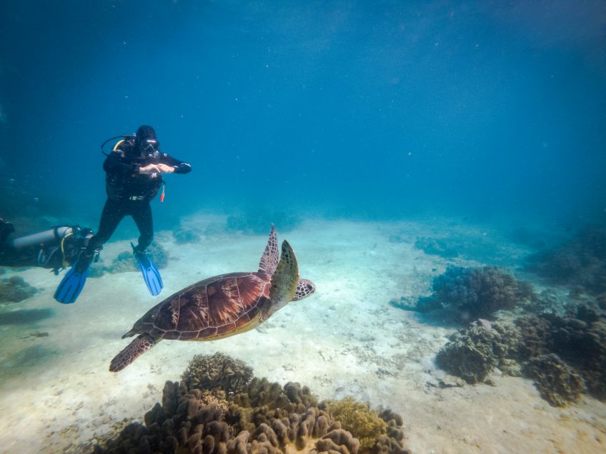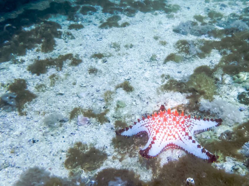 Unsere Unterkunft lag etwas entfernt und nach einer kurzen Pause wanderten wir dem vorläufigen Ziel entgegen. Bereits auf der Bootsfahrt haben wir eine Finnin kennengelernt und kurze Zeit später schloss sich noch ein Engländer unserem kleinen Trüppchen an. Die nächsten Tage waren gefüllt mit spannenden Tauchgängen, wovon die Highlights sicherlich der Tauchgang mit den Fuchshaien (ja, wir haben sie tatsächlich gesehen!!!) und dem Höhlentauchgang unter einer etwas entfernten Insel waren. Die Abende ließen wir gemütlich den netten Strandbars ausklingen und die Vorsätze nicht soviel tauchen zu gehen wankten bereits…